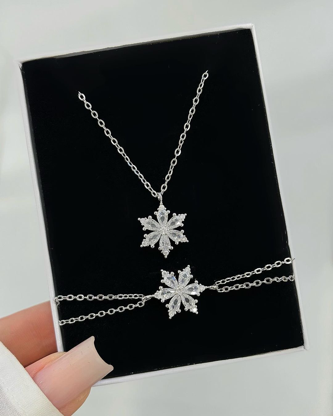 Gloria Gümüş dəst Zərif və dəbli görünüşünüzü tamamlayacaq bu gümüş dəst, gündəlik istifadə üçün olduğu qədər xüsusi günlər üçün də ideal seçimdir. Dəstə üzük, boyunbağı, sırğa və qolbaq daxil olmaqla, tam uyğunluq və harmoniya təqdim olunur.