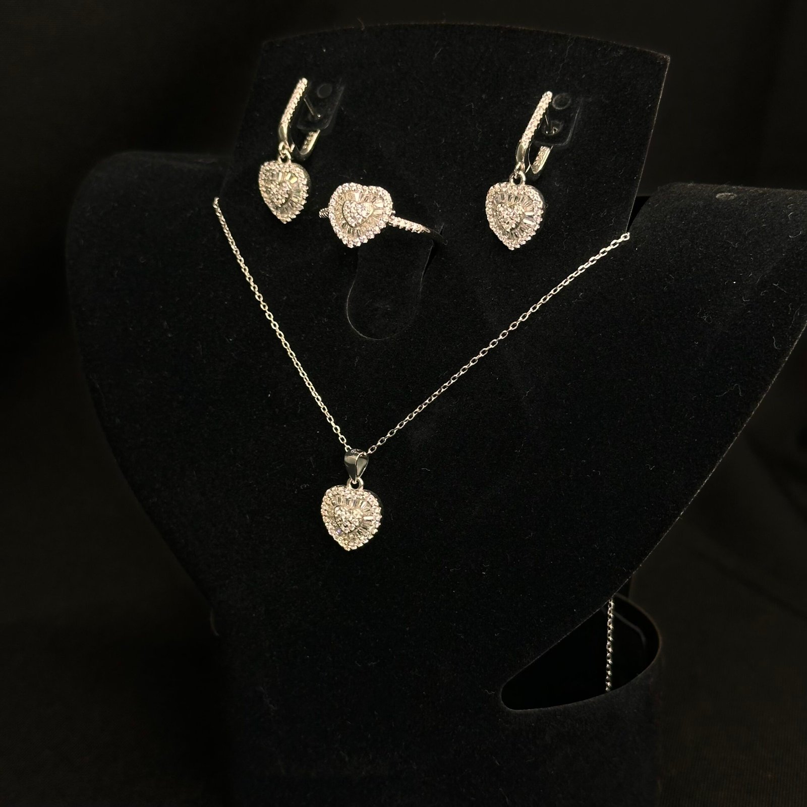 Gümüş dəstlərimiz 925 əyar orijinal gümüşdən hazırlanan bu dəst parlaq görünüşü, uzunömürlü keyfiyyəti və dəriyə uyğunluğu ilə seçilir. Klassik və ya modern dizayn seçimləri ilə hər yaşa və zövqə xitab edir. Daşlı və ya sadə modellər sayəsində öz üslubunuzu asanlıqla ifadə edə bilərsiniz.