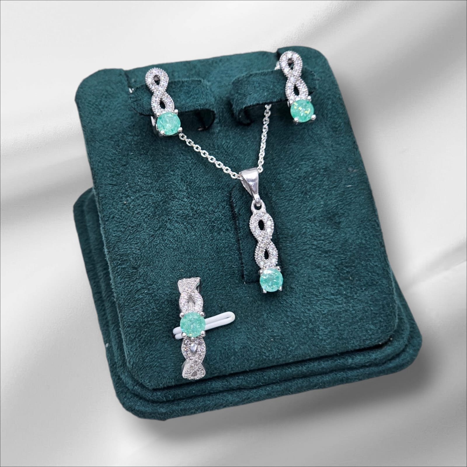 Nya Gümüş dəst Zərif və dəbli görünüşünüzü tamamlayacaq bu gümüş dəst, gündəlik istifadə üçün olduğu qədər xüsusi günlər üçün də ideal seçimdir. Dəstə üzük, boyunbağı, sırğa və qolbaq daxil olmaqla, tam uyğunluq və harmoniya təqdim olunur.