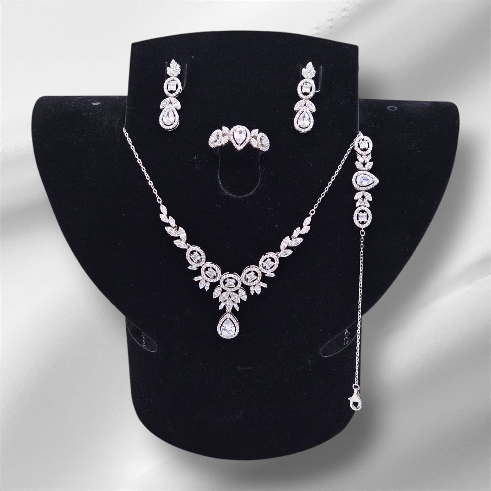 Patience Gümüş dəst Zərif və dəbli görünüşünüzü tamamlayacaq bu gümüş dəst, gündəlik istifadə üçün olduğu qədər xüsusi günlər üçün də ideal seçimdir. Dəstə üzük, boyunbağı, sırğa və qolbaq daxil olmaqla, tam uyğunluq və harmoniya təqdim olunur.