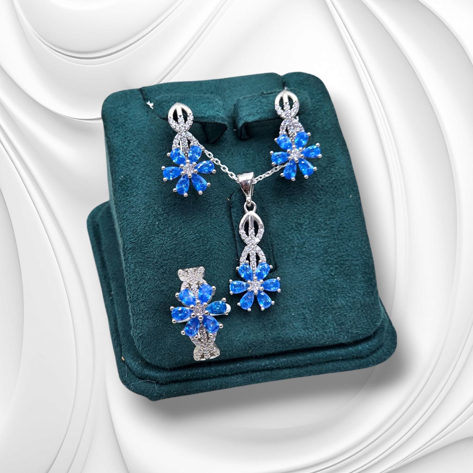 Zərif və dəbli görünüşünüzü tamamlayacaq bu gümüş dəst, gündəlik istifadə üçün olduğu qədər xüsusi günlər üçün də ideal seçimdir. Dəstə üzük, boyunbağı, sırğa və qolbaq daxil olmaqla, tam uyğunluq və harmoniya təqdim olunur.