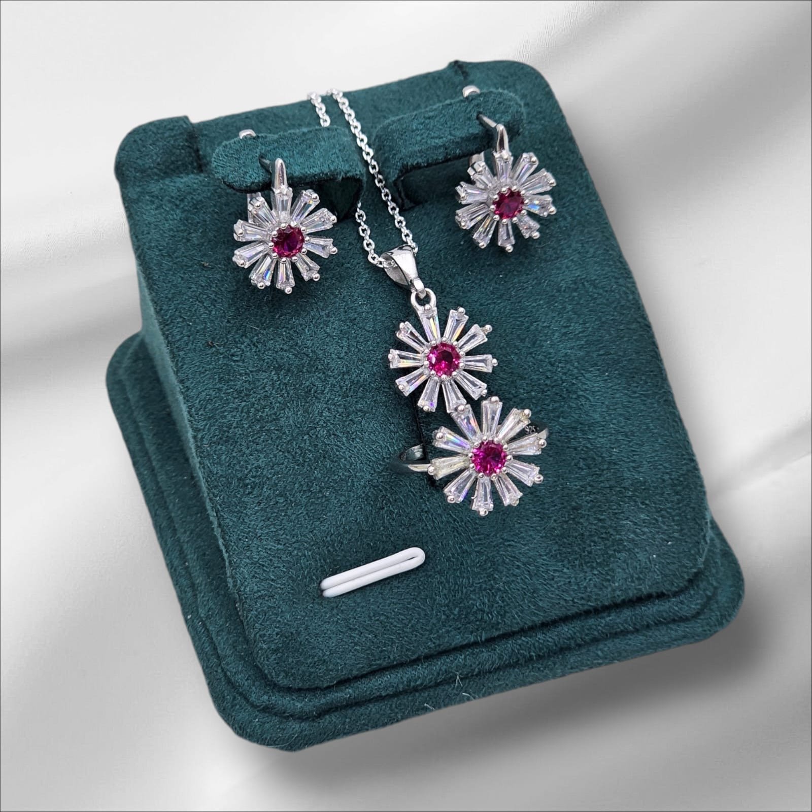 Roxana Gümüş dəst Zərif və dəbli görünüşünüzü tamamlayacaq bu gümüş dəst, gündəlik istifadə üçün olduğu qədər xüsusi günlər üçün də ideal seçimdir. Dəstə üzük, boyunbağı, sırğa və qolbaq daxil olmaqla, tam uyğunluq və harmoniya təqdim olunur.