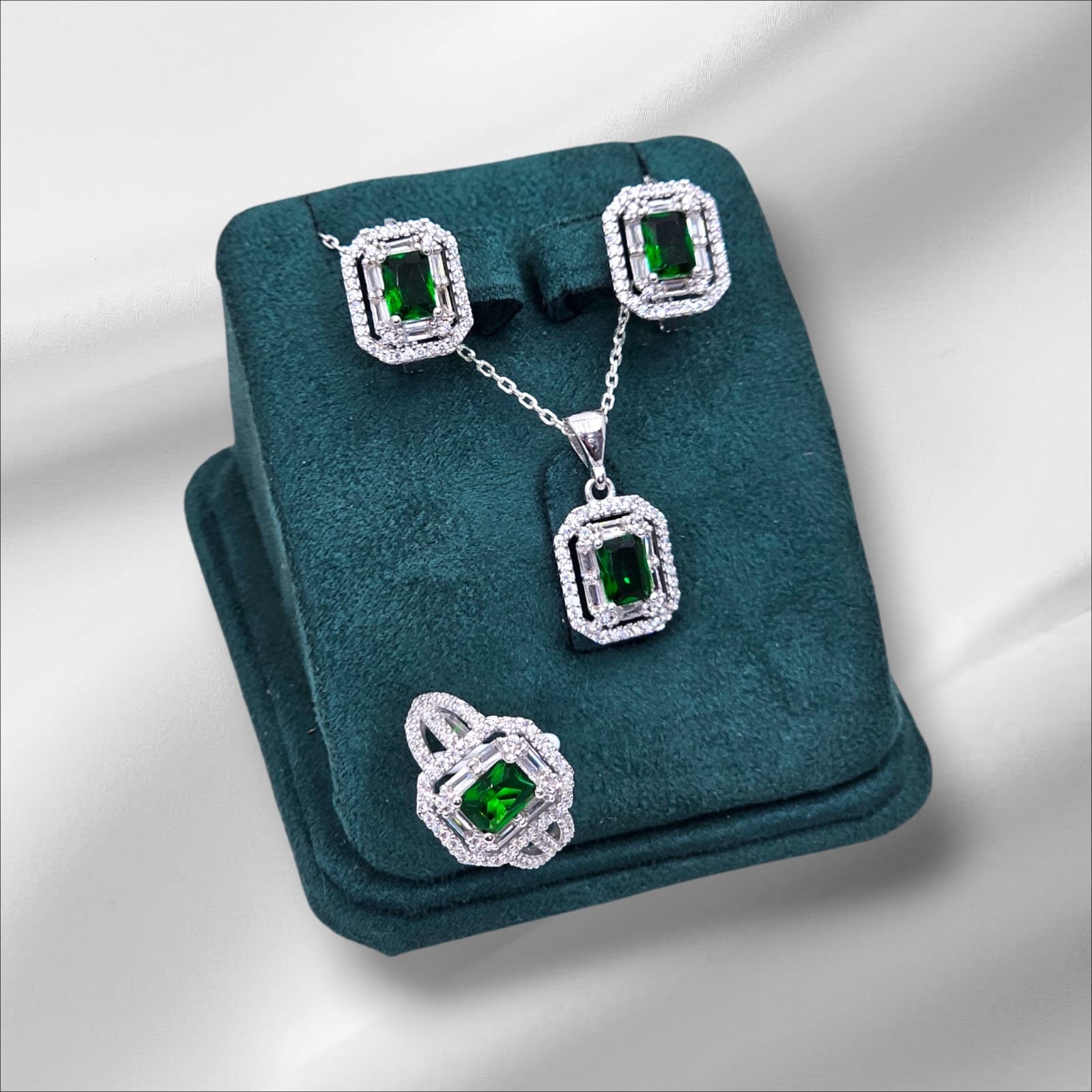 Sarai Gümüş dəst Zərif və dəbli görünüşünüzü tamamlayacaq bu gümüş dəst, gündəlik istifadə üçün olduğu qədər xüsusi günlər üçün də ideal seçimdir. Dəstə üzük, boyunbağı, sırğa və qolbaq daxil olmaqla, tam uyğunluq və harmoniya təqdim olunur.