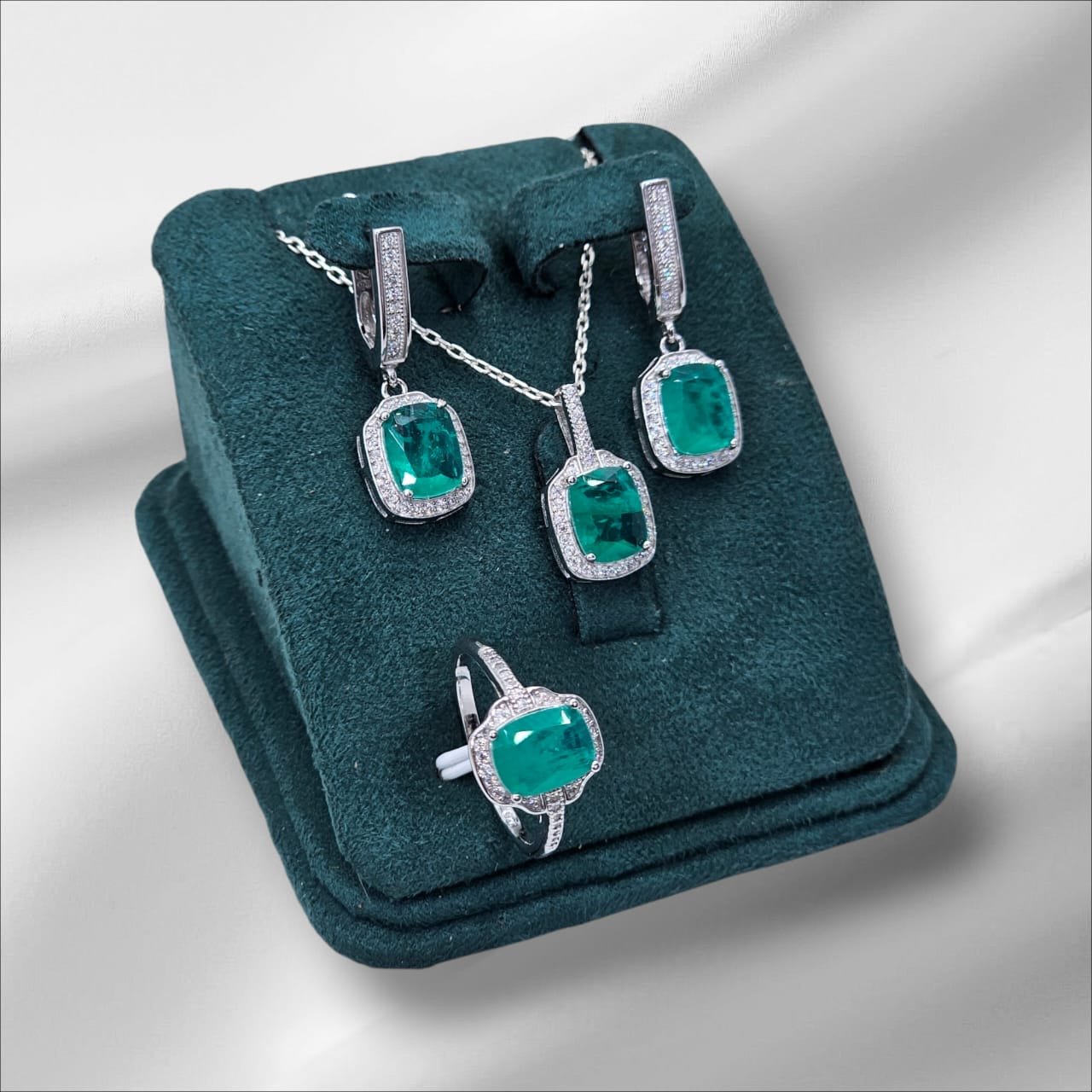 Shania Gümüş dəst Zərif və dəbli görünüşünüzü tamamlayacaq bu gümüş dəst, gündəlik istifadə üçün olduğu qədər xüsusi günlər üçün də ideal seçimdir. Dəstə üzük, boyunbağı, sırğa və qolbaq daxil olmaqla, tam uyğunluq və harmoniya təqdim olunur.