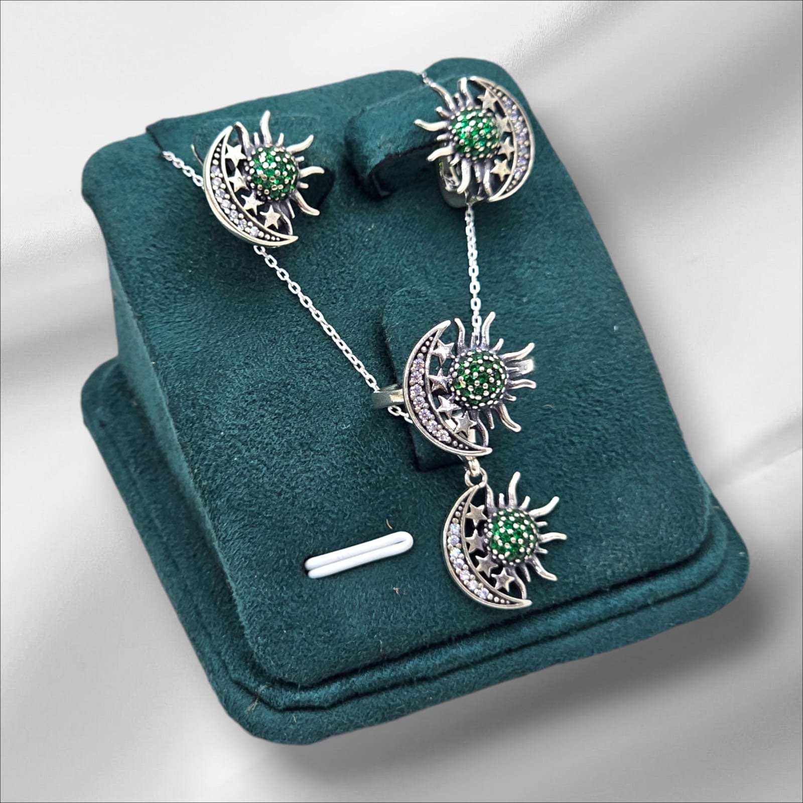 Shawna Gümüş dəst Zərif və dəbli görünüşünüzü tamamlayacaq bu gümüş dəst, gündəlik istifadə üçün olduğu qədər xüsusi günlər üçün də ideal seçimdir. Dəstə üzük, boyunbağı, sırğa və qolbaq daxil olmaqla, tam uyğunluq və harmoniya təqdim olunur.