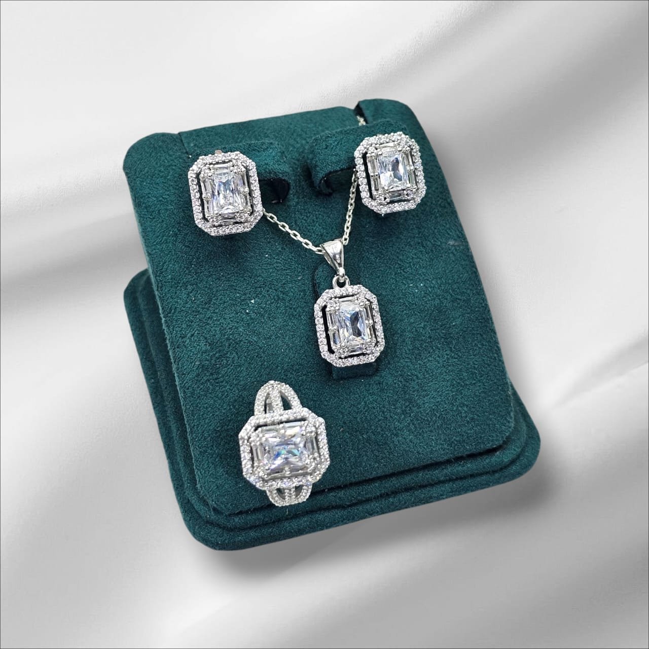 Sydni Gümüş dəst Zərif və dəbli görünüşünüzü tamamlayacaq bu gümüş dəst, gündəlik istifadə üçün olduğu qədər xüsusi günlər üçün də ideal seçimdir. Dəstə üzük, boyunbağı, sırğa və qolbaq daxil olmaqla, tam uyğunluq və harmoniya təqdim olunur.